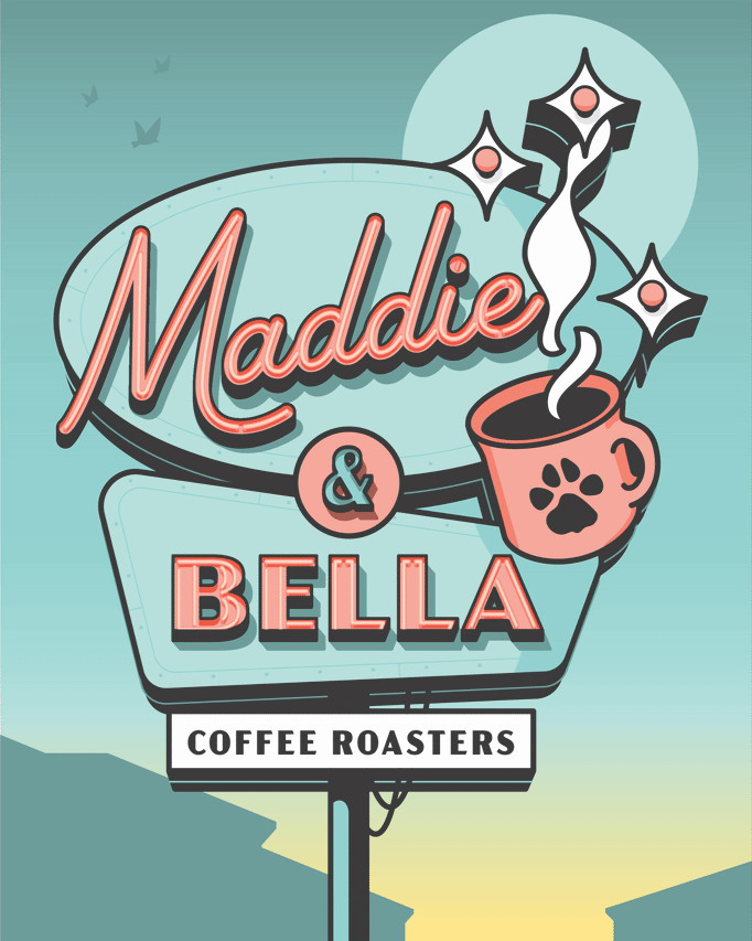 I had the pleasure of working with this local coffee shop to create designs for their summer menu. They chose a soda fountain/50’s diner theme and I responded by creating a custom illustrated neon sign as well as a monogram for simple applications like stickers for the to-go cups. This seasonal theme change is an awesome way to keep things exciting for customers and honor the rotating drink menus. Personally, I love a theme and any opportunity to imagine over the top neon signs designs.